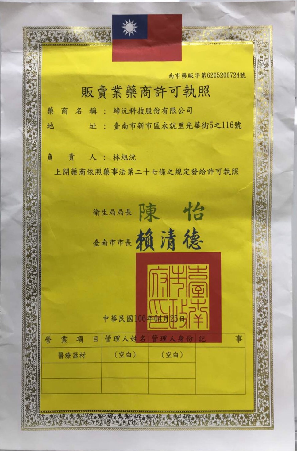 藥商名稱:締沅科技股份有限公司